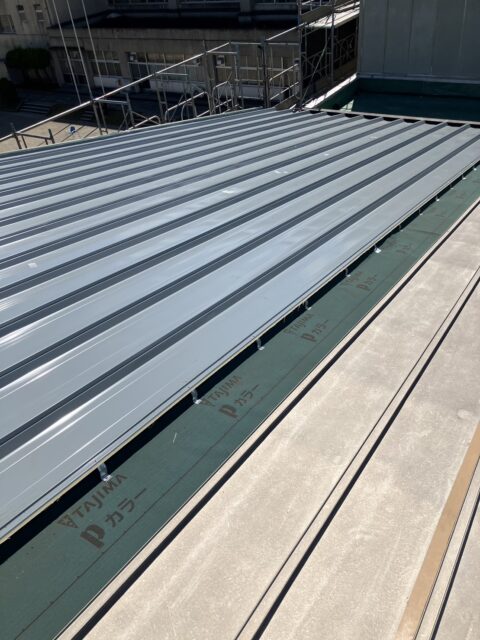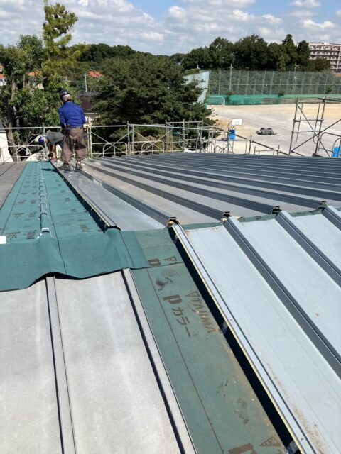 今回は、現在施工中の千葉県にある某中学校の体育館の屋根と外壁の改修工事の様子をご紹介します。