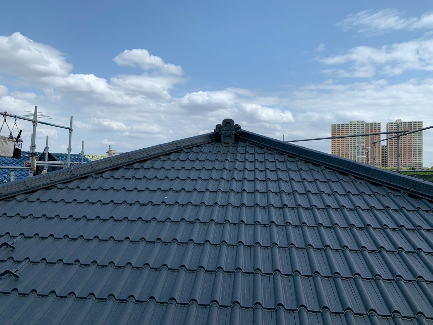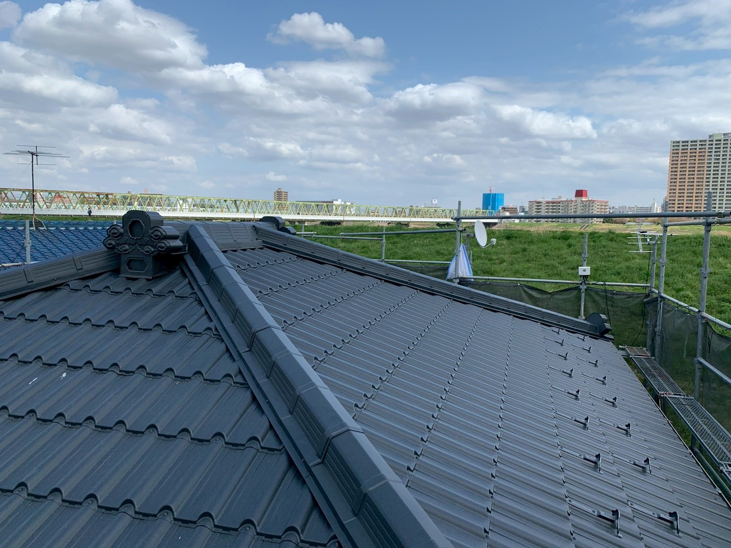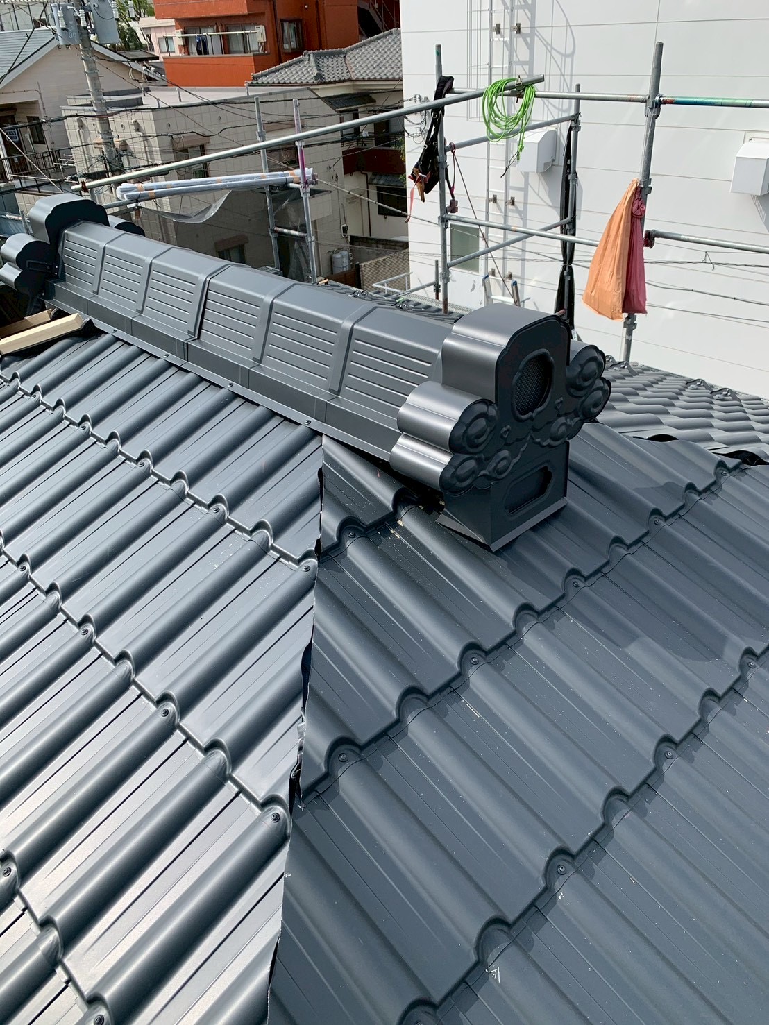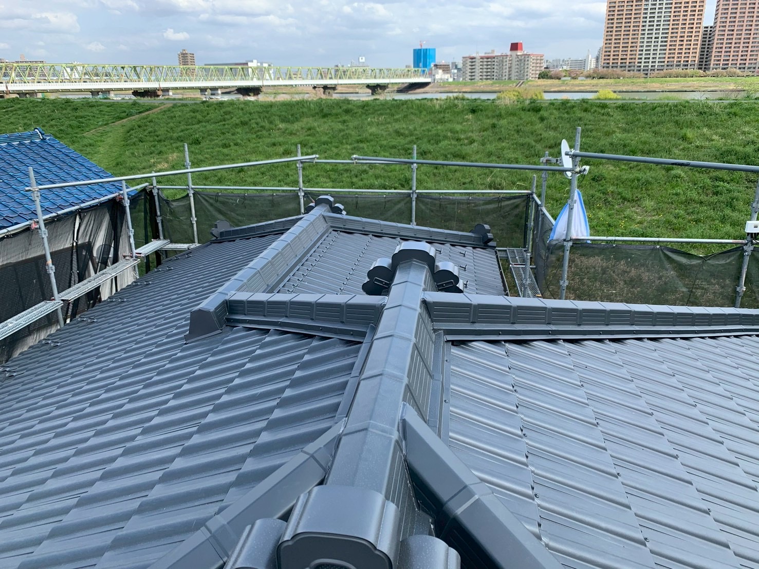「和風の外観はそのまま残したい」というご希望から、今回は瓦の形状を再現した金属屋根材を採用しています。